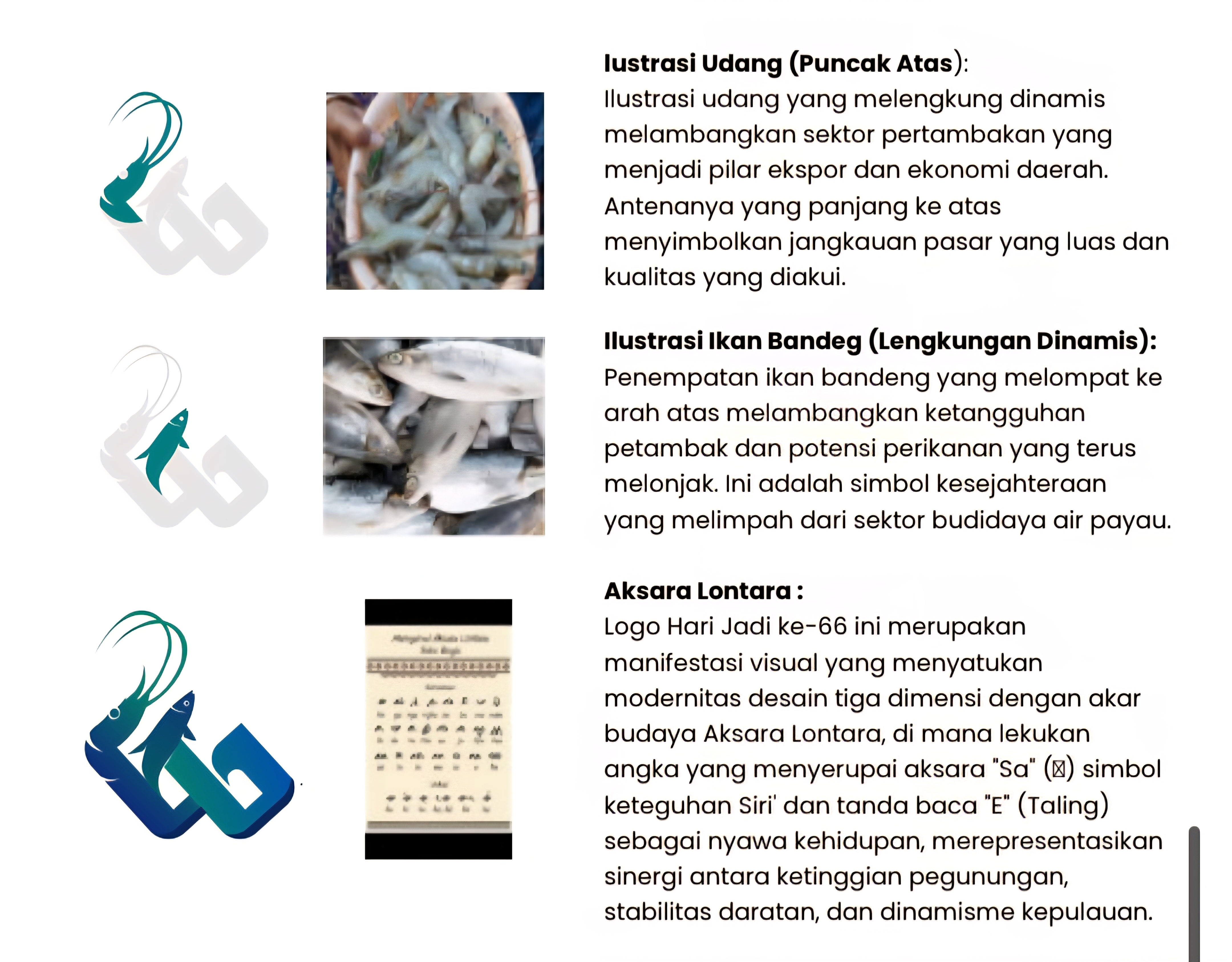 Secara keseluruhan, logo ini adalah pernyataan visual bahwa Pangkep di usia ke-66 berdiri di atas fondasi alam dan budaya yang kuat, dengan semangat kolaborasi untuk mencapai pertumbuhan berkelanjutan dan kesejahteraan yang merata.