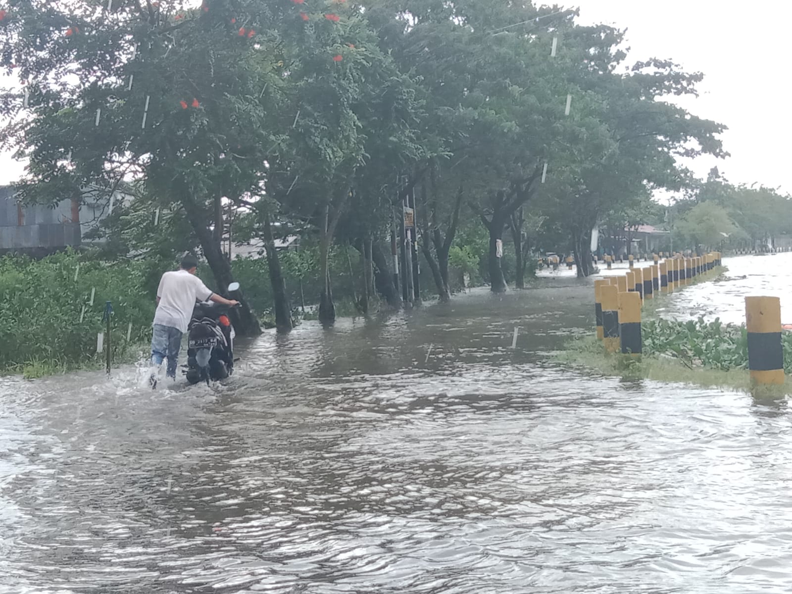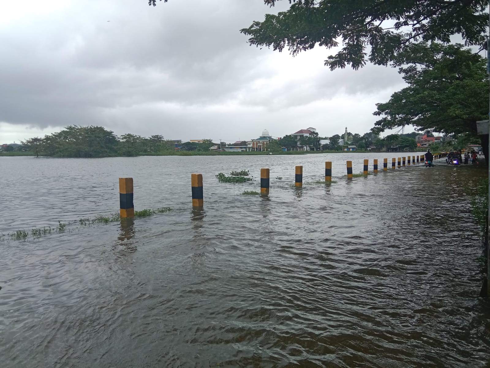 Pantauan jejakfakta, pukul 15.24 Wita, luapan membanjiri badan jalan dan berarus.