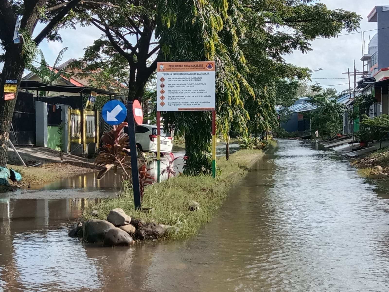 Lokasi tempat pengungsian itu terletak di luar kompleks Perumnas Antang. Ada tempat pengungsian di dalam kompleks, namun kendaraan penulis tidak bisa melewatinya, dikarenakan ketinggian air yang mencapai 50 cm.