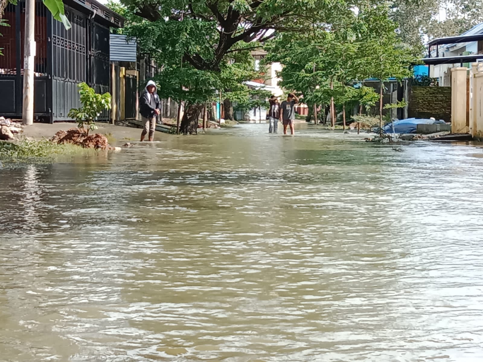 Dari pantauan Jejakfakta, Minggu (19/2/2023) sekitar pukul 16.15 WITA, ketinggian air sudah sampai di lutut orang dewasa.