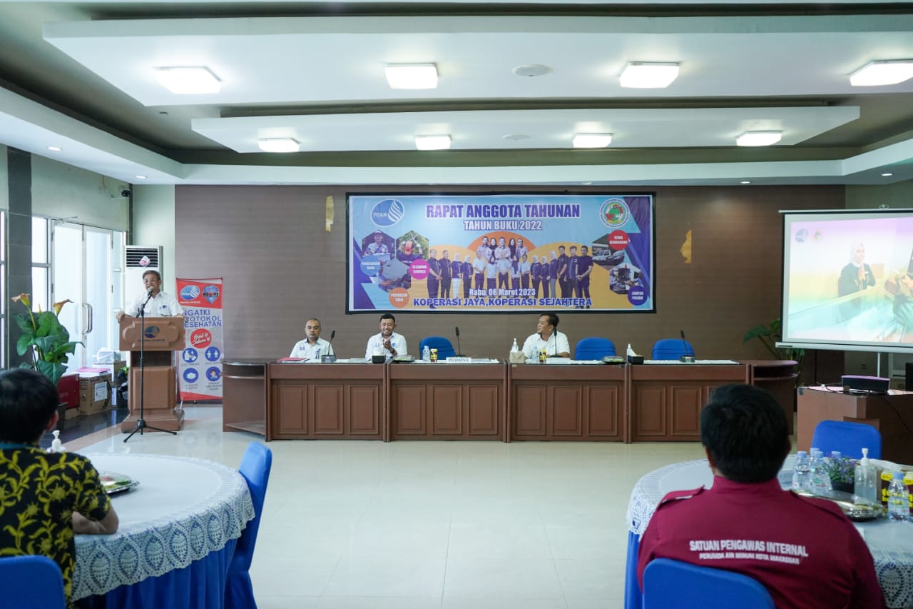Makassar, jejakfakta - Koperasi Karyawan Perumda Air Minum Kota Makassar Tirta Sejahtera menggelar rapat anggota tahunan (RAT) untuk tahun buku 2022 tanggal 8 Maret 2023 di, Aula Tirta Dharma PDAM Kota Makassar, Rabu (8/3/2023).