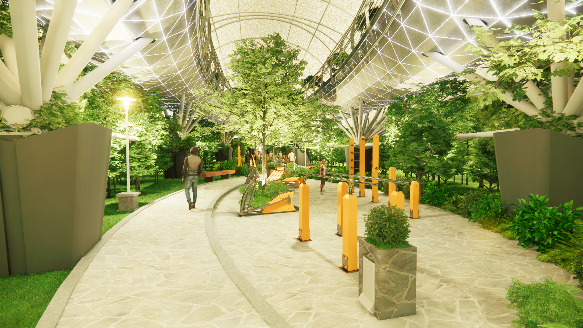 Desainnya berbentuk angka 8 disertai konsep elevated atau layang. Dengan begitu, saat joging masyarakat akan menikmati Kota Makassar dari ketinggian.