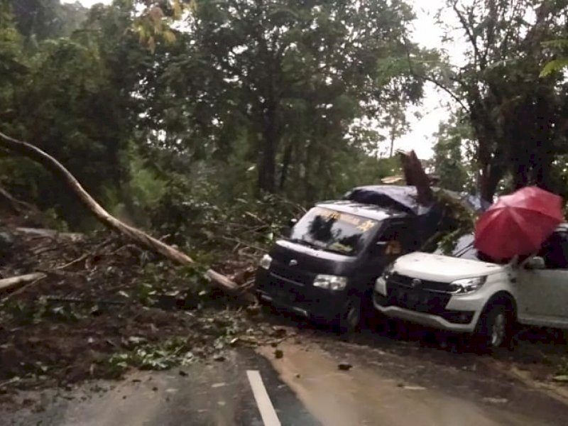 Foto bencana longsor yang dikabarkan terjadi di jalan poros Malino, perbatasan antara Parangloe dan Kecamatan Tinggimoncong, Kabupaten Gowa, Sulsel, Rabu (16/11/2022) jelang petang.