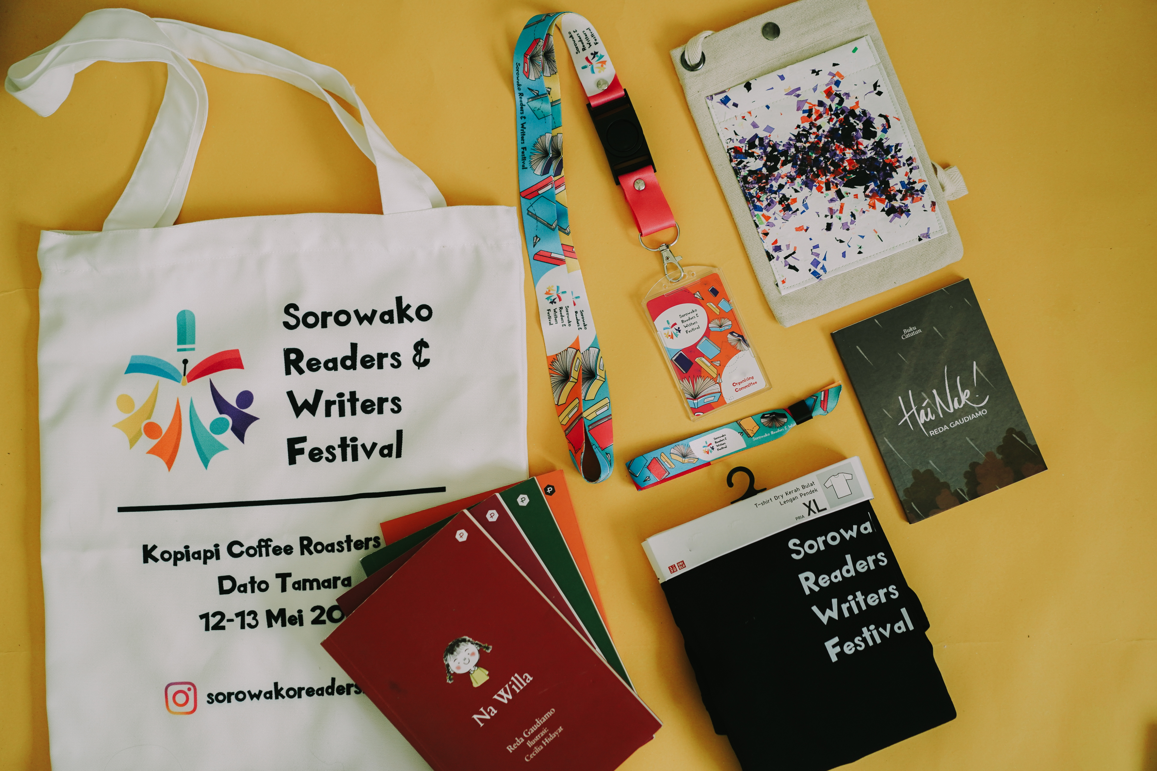 Jajaran narasumber dalam talkshow rangkaian SRWF hari kedua, yakni Penulis serta Seniman musik dan puisi Reda Gaudiamo, Pengembang Program Matematika SMM Nadia Cassinie, Akademisi Hesti Wulandari, Musisi dan Komposer asal Sorowako Agus Puka, dan Diba sendiri.
