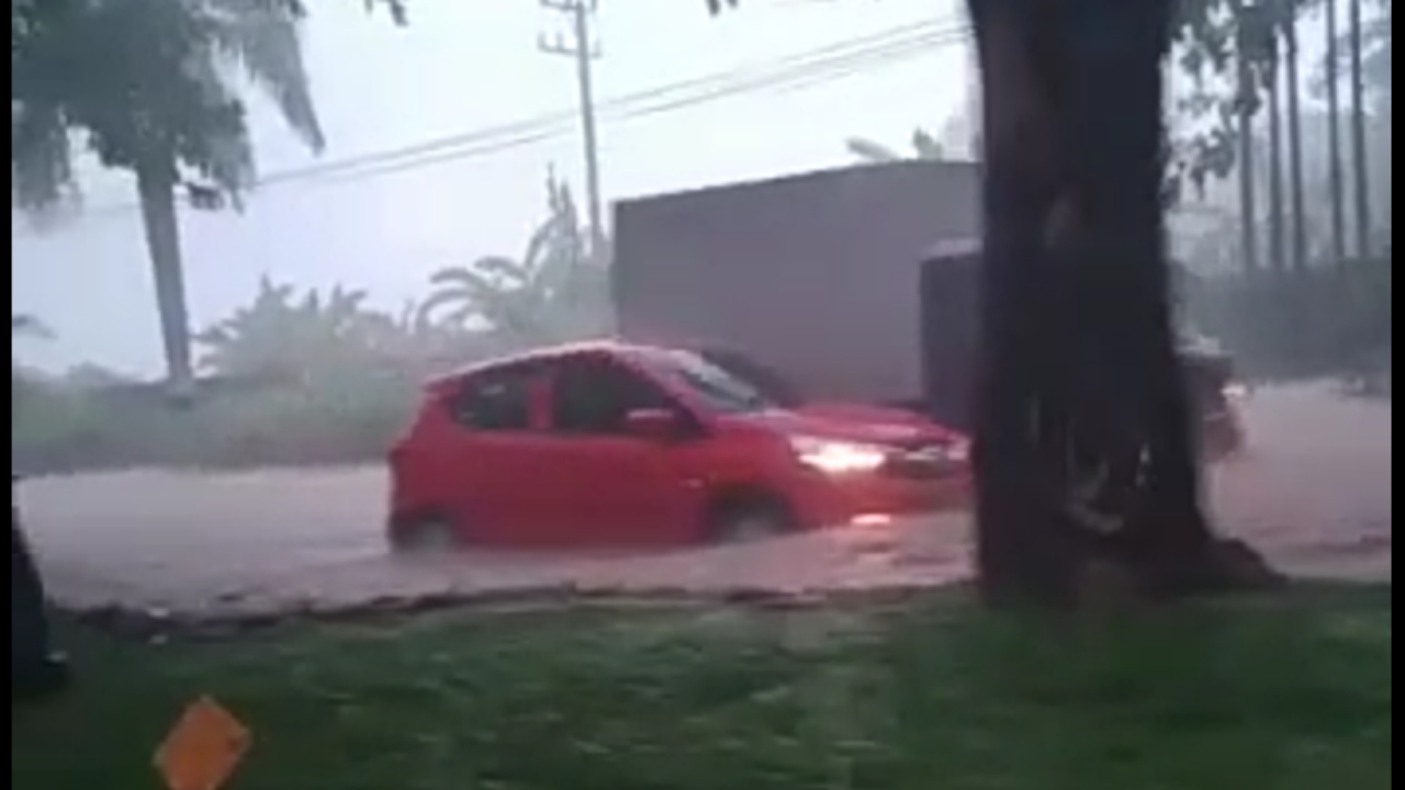 Depan gerbang Jl Kima 3, Jl Kima Raya 1 yang berbatasan langsung Terminal Regional Daya dan Pasar Niaga Daya, praktis terendam banjir.