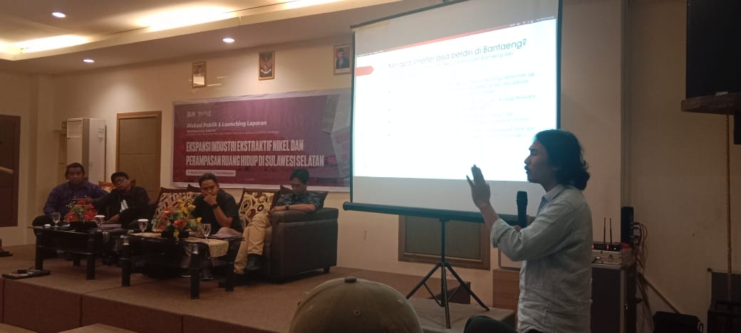 Diskusi dan launching hasil laporan riset terkait smelter di kawasan Kabupaten Bantaeng selain Ady Anugrah Pratama yang menjadi narasumber, juga hadir narasumber lain, diantaranya, Zainal Arifin Ketua bidang advokasi dan jaringan YLBHI, Ahmad Ashov Birry Direktur Program Trend Asia dan Zulkarnain dai AGRA Sulsel.
