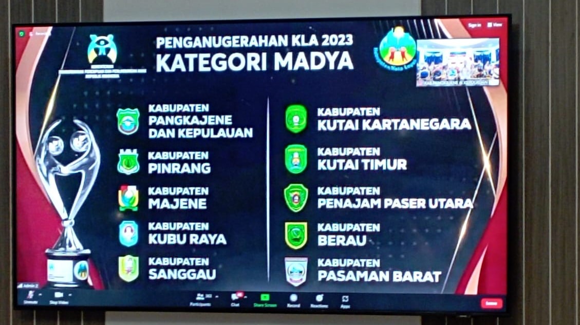 Pemerintah Kabupaten Pangkajene Kepulauan (Pangkep) kembali meraih penghargaan sebagai kabupaten layak anak (KLA) kategori Madya saat Penganugerahaan Kabupaten/Kota Layak anak dilaksanakan di Kota Semarang, Jawa Tengah, diikuti melalui Daring, Sabtu (22/7/2023). @Jejakfakta/dok. Humas Pemkab Pangkep