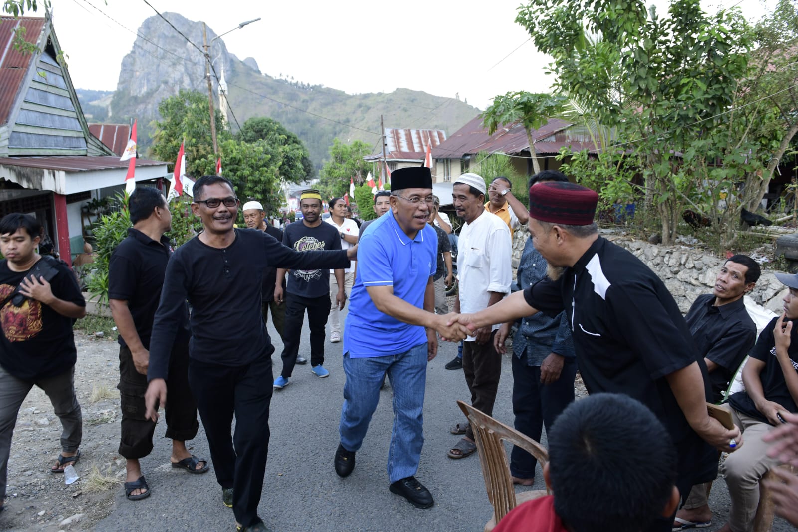 Tokoh politik Sulsel, Ilham Arief Sirajuddin disambut warga di Kotu, Desa Bambapuang, Kecamatan Anggeraja, Enrekang, Rabu (30/08/2023). @Jejakfakta/dok. Reza Arifuddin