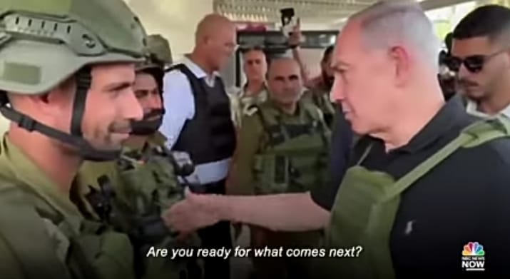 Seperti direkam NBC News, dalam kunjungan tersebut, Netanyahu menyambangi para pasukan Israel di sana dan berkata, "Kalian siap untuk tahap selanjutnya? Tahap selanjutnya akan datang."