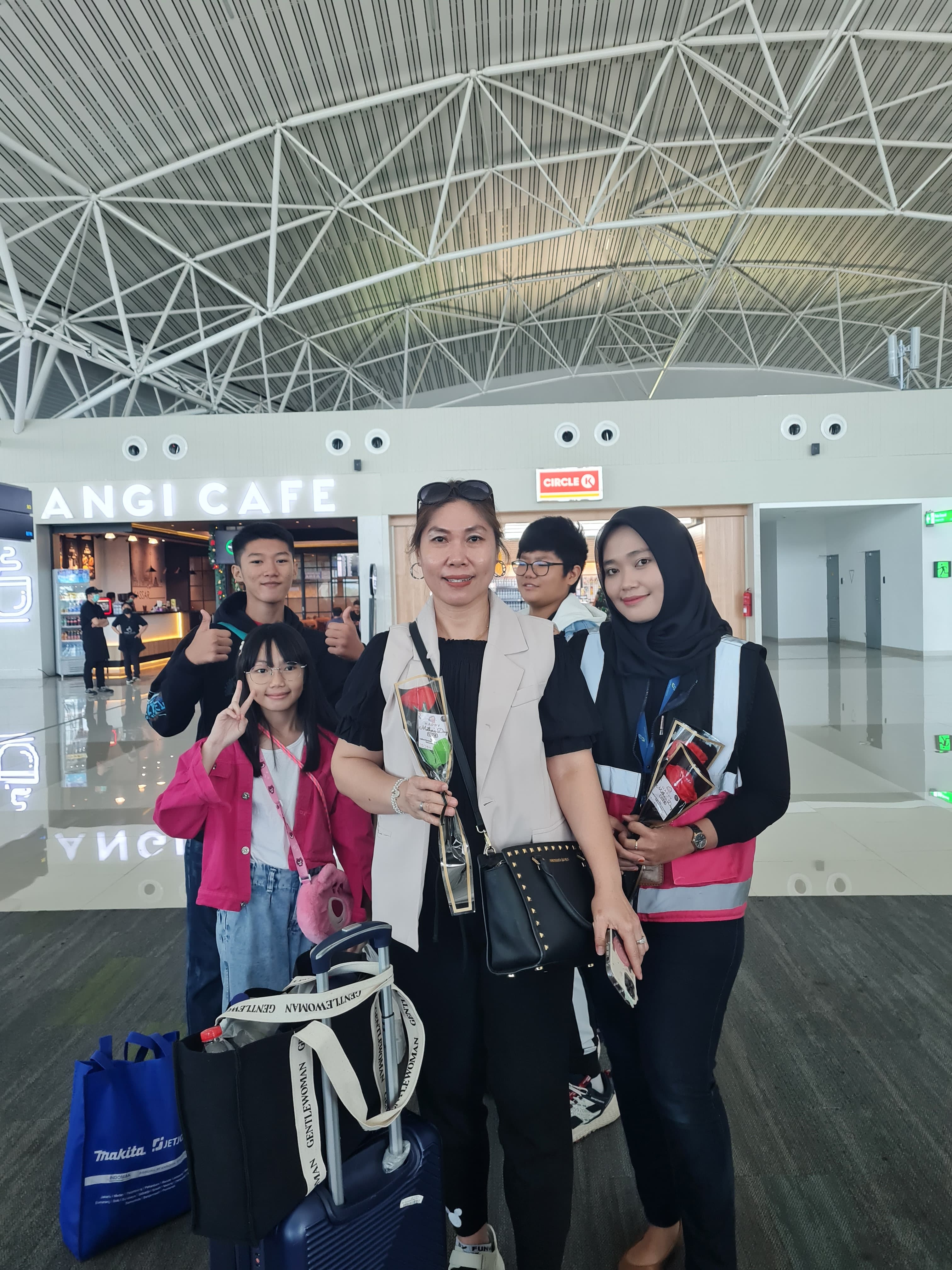 Wajah senang terlihat dari wajah para penumpang yang mendapatkan bunga dari pengelola bandara. Penumpang Wanita atau ibu yang mendapatkan bunga, beberapa diantaranya sedang membawa keluarganya untuk berlibur.