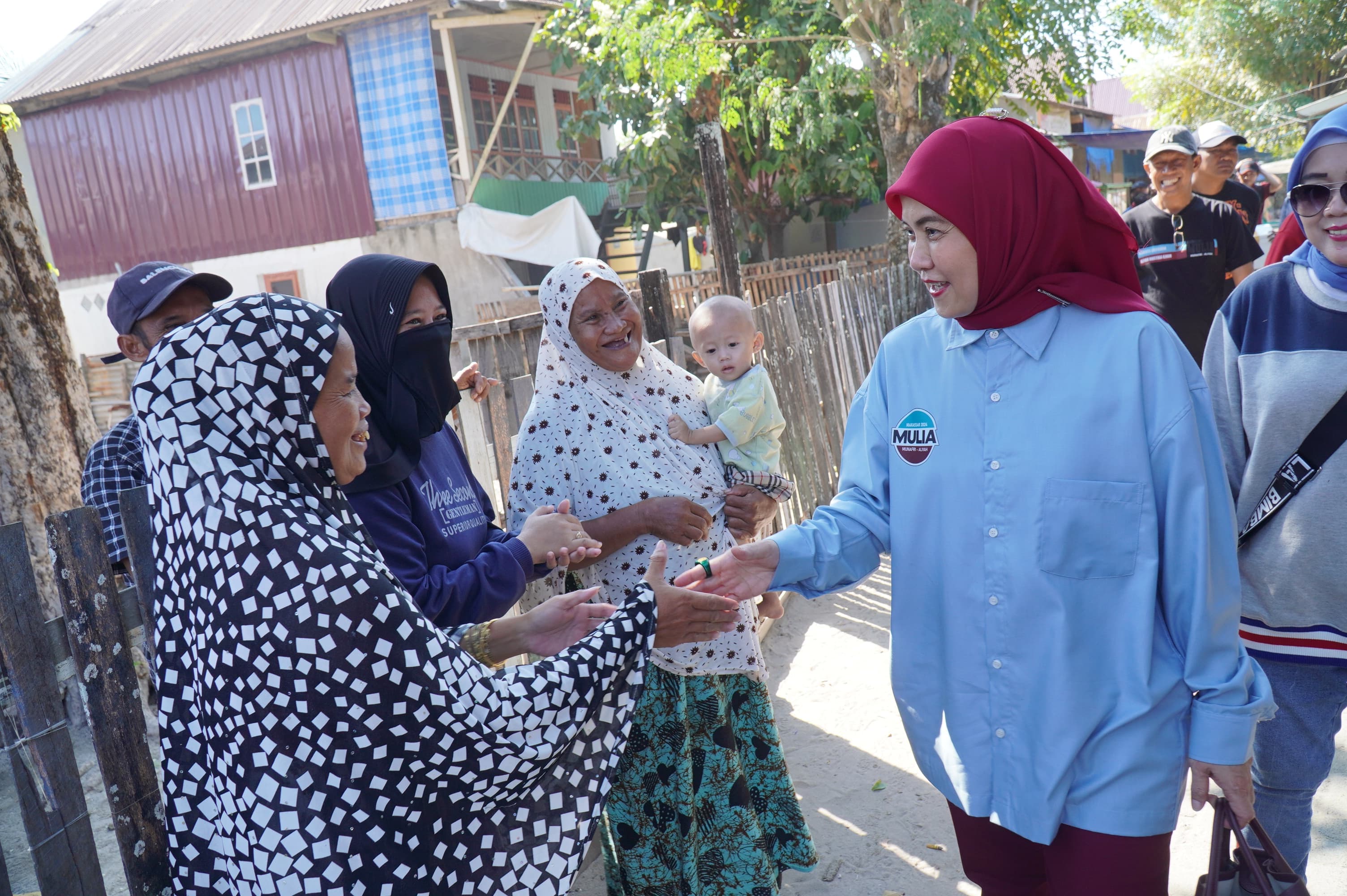 Calon Wakil Wali Kota Makassar, nomor 01 Aliyah Mustika Ilham disambut baik warga saat kampanye perdana di wilayah pesisir atau Kepulauan Kota Makassar, Jumat (4/10/2024). @Jejakfakta/dok. Istimewa