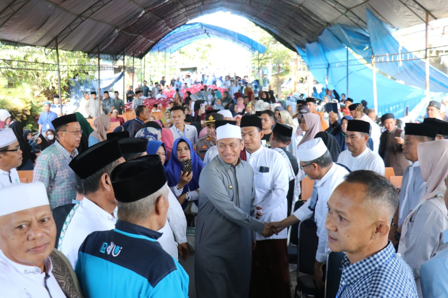 Warga bahkan membentuk barisan untuk dapat bersalaman langsung dengan dua pemimpin daerah mereka, menunjukkan keakraban dan dukungan yang besar terhadap kepemimpinan keduanya.